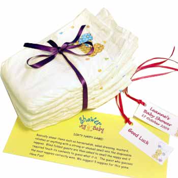 The game packs we offer are; Pack of two baby shower games, baby shower games duo, Trio of fun party games, Three of the best baby shower games, Five of the best baby shower games and finally we offer a deluxe baby shower games pack which includes over eight games, a winners prize and latex balloons.