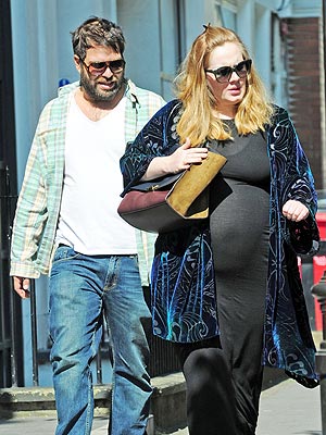 British singing sensation Adele stepped out in London Tuesday with her boyfriend, Simon Konecki, giving us a glimpse of her growing baby bump.