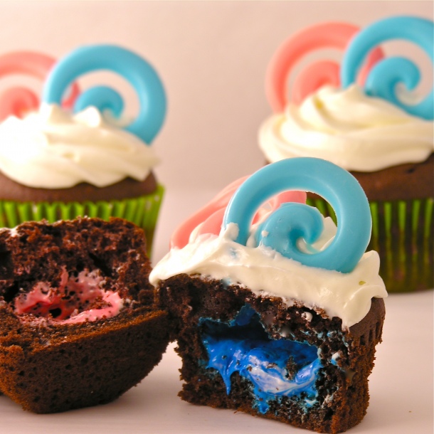 Is it a boy? Is it a girl? You’ll have to take a bite of this cupcake to find out! Such a fun way to reveal the gender of a coming baby!!!